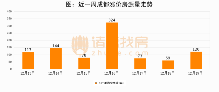 根据诸葛找房数据显示,成都24小时涨价房源量为120套,较12月18日增加61套,环比上涨103.4%。与此同时,涨价房源占比小幅扩大,业主信心有所提升。