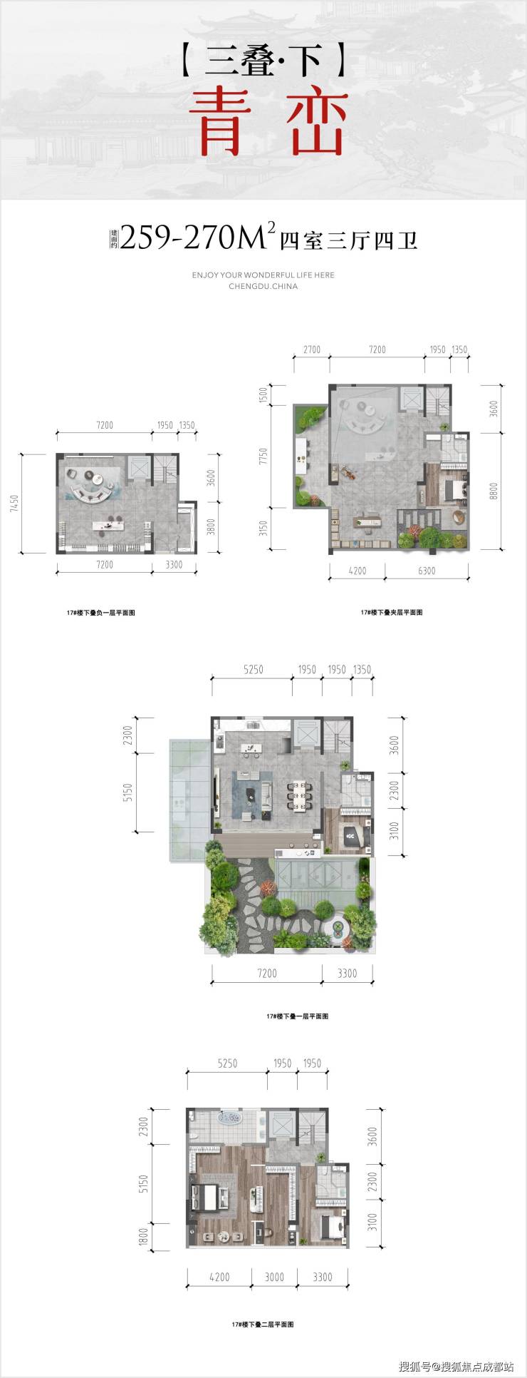 【三叠】下叠 四室三厅四卫 | 约259-270㎡