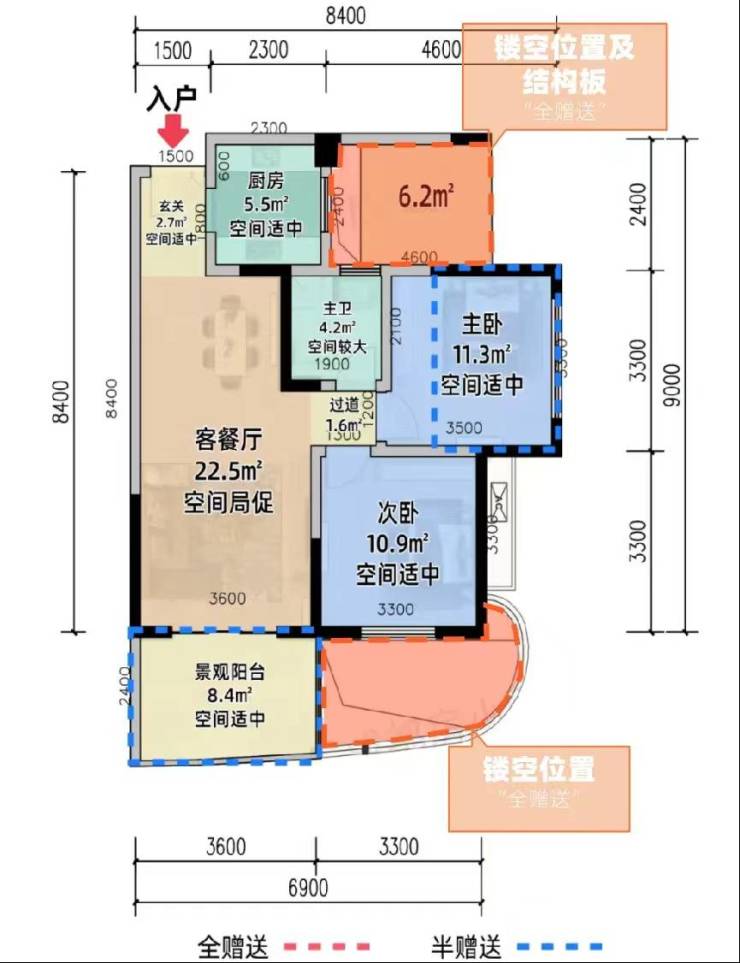 适合刚需及单身置业,紧凑布局兼顾功能,赠送面积提升空间利用率,总价门槛低。