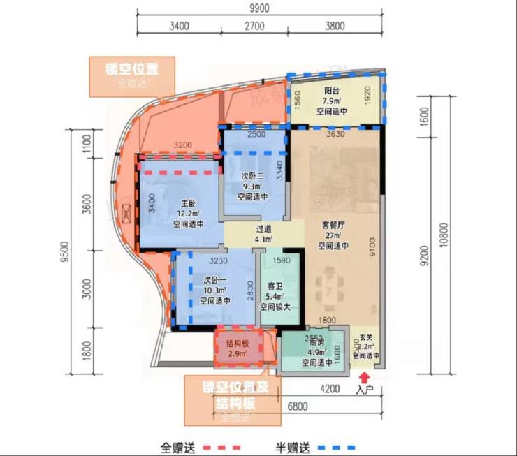 设计亮点:全明户型、高赠送(如阳台、飘窗)、3米层高及4.8米入户大堂提升居住品质。