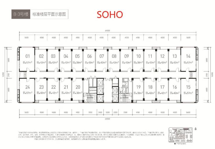 大面宽,进深短LOFT开间4.9米、SOHO开间4.5米,进深6.8米,采光好。